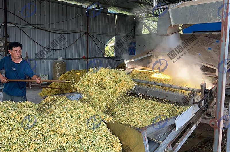導(dǎo)讀:隨著規(guī)?;N植的推廣,金銀花干制加工的處理量越來越大,人們對(duì)其品質(zhì)的要求也越來越高,傳統(tǒng)的晾曬受氣候影響較大,干制品質(zhì)也參差不齊,因此金銀花烘干加工設(shè)備應(yīng)運(yùn)而生。